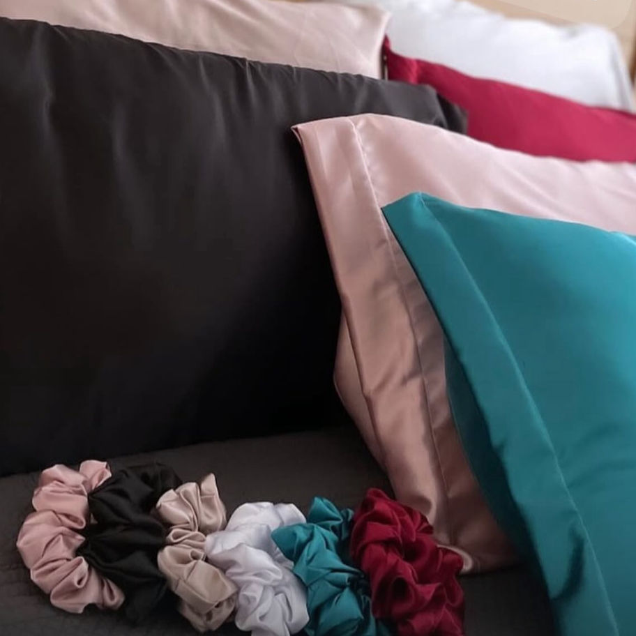 Each set includes a beautifully crafted satin pillowcase and a coordinating scrunchie & bonnet , perfectly packaged and ready for gifting. Available in m my any colours, it’s the perfect blend of comfort, beauty, and style.