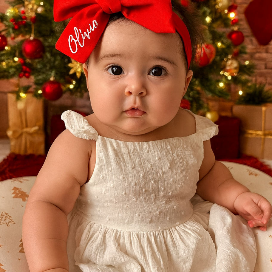 Add a touch of festive charm with our Personalised Christmas Bow — a timeless accessory perfect for the holiday season! Each bow is beautifully crafted from high-quality red fabric and personalized with your child’s name in elegant white script.